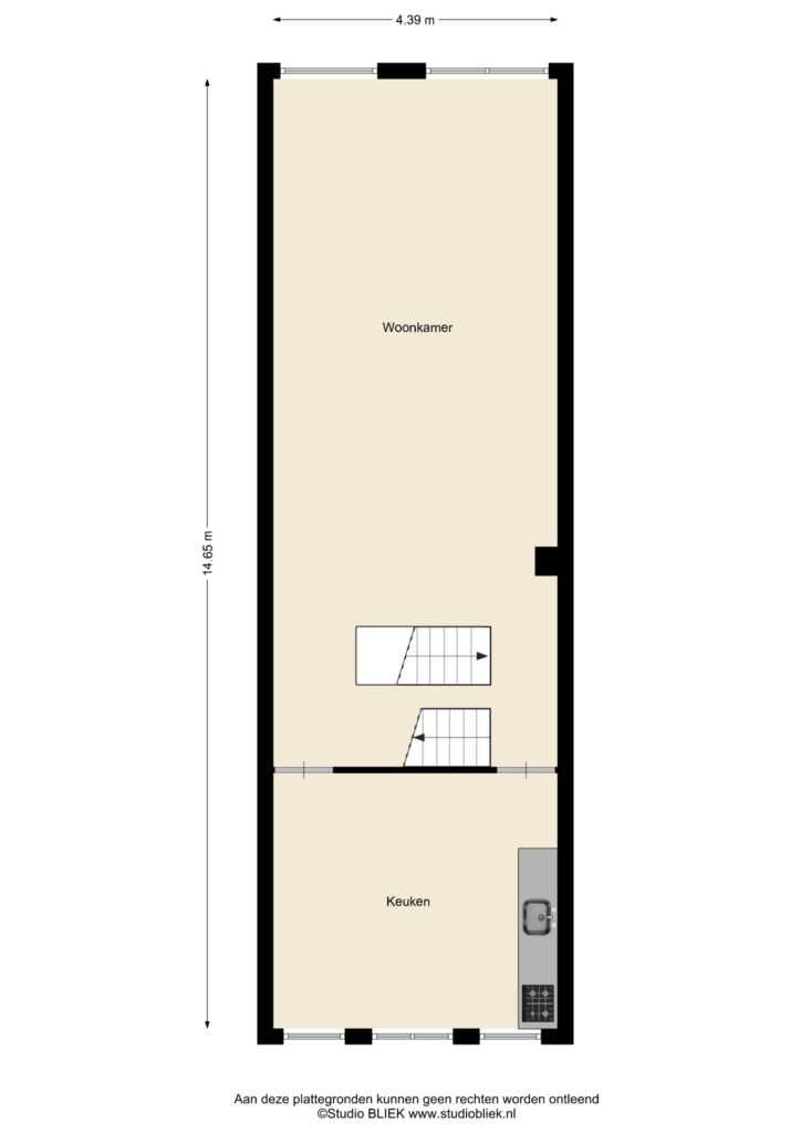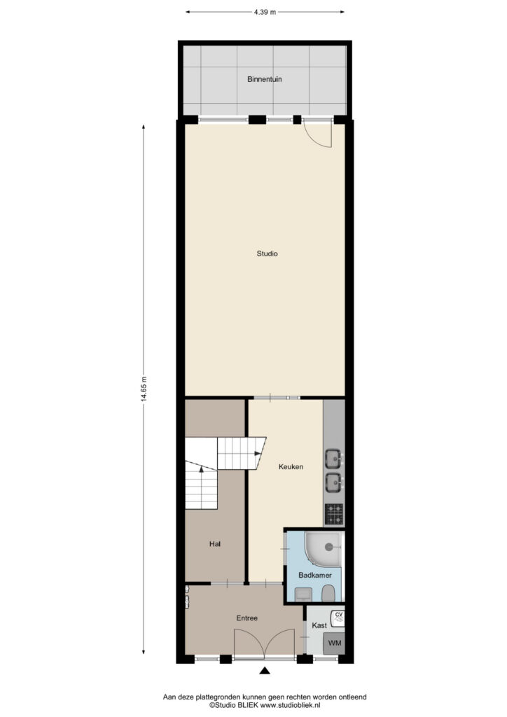 • De begane grond heeft een vloeroppervlakte van circa 48 m².