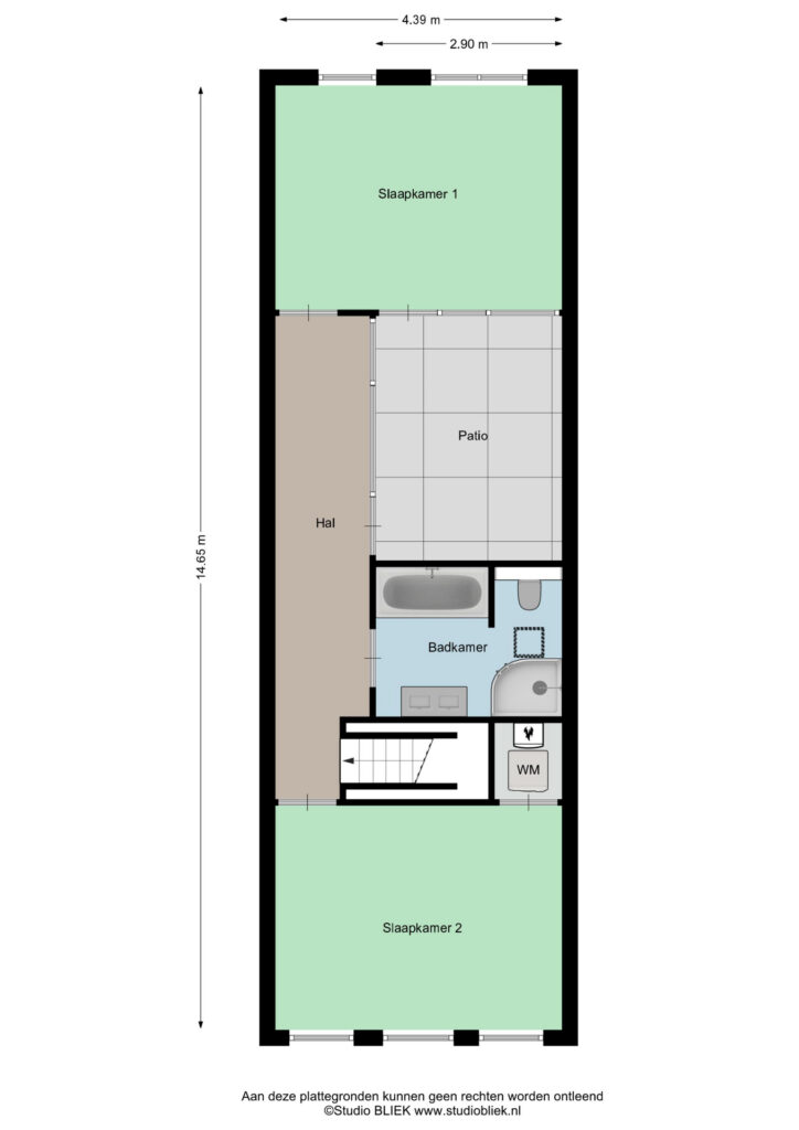 • De twee bovengelegen verdiepingen beslaan samen ongeveer 110 m².